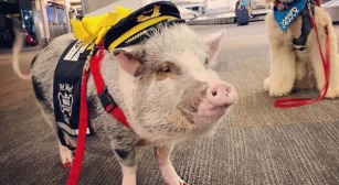 Terápiás malac az utasok nyugalmáért