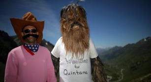 Ezek a kerékpársport-rajongók a francia Pireneusokban kedvencüket buzdították.