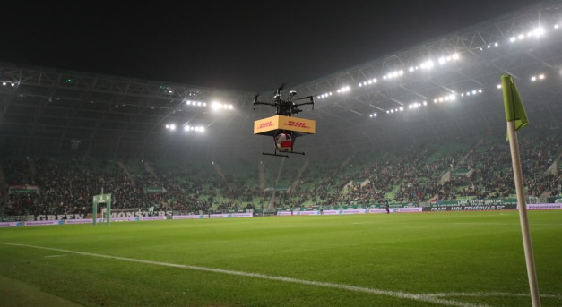 A Groupama Arénában egy speciális drón volt a szállítóeszköz.