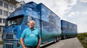 Az elektromos 26 tonnás teherautó legyőzi a magas alpesi utat