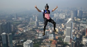 Egy extrémsportoló 300 méter magas toronyházból ugrott le Kuala Lumpur egyik szédítően magas épületéről.