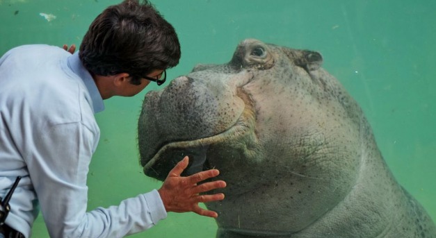 Franciaországban is elnéptelenedtek a városok, közterek és az állatparkok a koronavírus-válság idején. Ezt nemcsak az emberek, hanem az állatok is megsínylették. Saint-Aignan város közelében, a Beauval állatkertben készült a Spiegel Online felvétele, ahol egy magányos víziló az állatkert igazgatójától kapott támogatást.