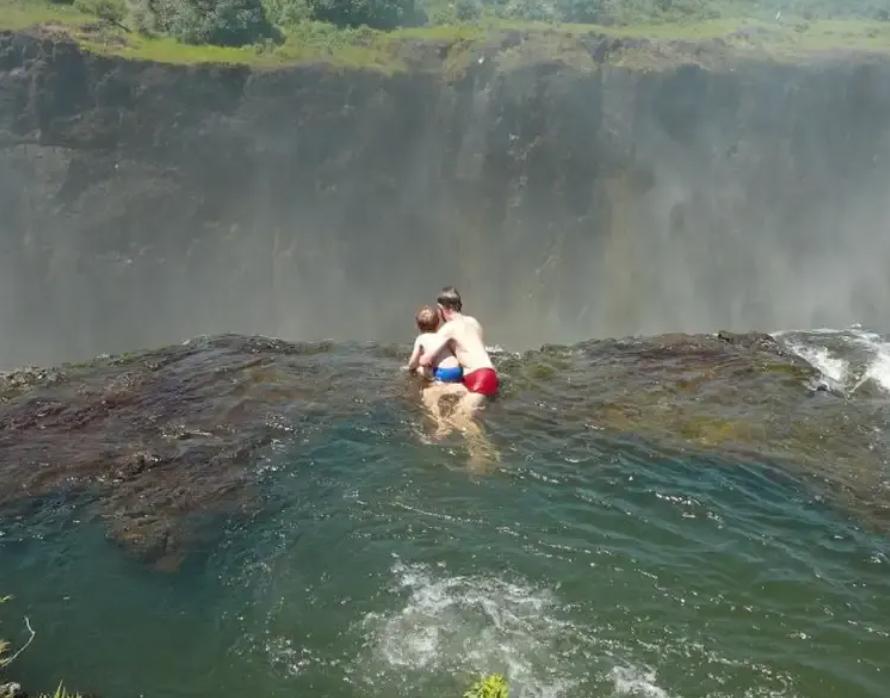 Az Afrikában található Viktória-vízesés szélére kikapaszkodni cseppet sem veszélytelen mutatvány. Mégis megteszi ezt sok százezer turista minden évben, az ’Ördög úszómedencéjének’ vagy ’Fortyogó üstnek’ nevezett természetes tavacska rendkívüli népszerűségnek örvend. A helyi, tapasztalt vezetők ugyanis pontosan tudják, hogy hol kell beugrani és kiúszni ahhoz, hogy a veszélyt minimálisra csökkentsék. Még így is minden évben legalább egy ember életét követeli a vakmerő vállalkozás.