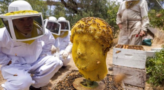 A méhek megmondhatják egymásnak, hol a legjobb táplálékforrás, közösen kiszavazhatják a régensüket és művészileg aktívak lehetnek. A rovarok viasszal borítottak be egy 3D-vel nyomtatott műanyag fejet, amit ezután sablonként használnak. A hihetetlen rajzolat egy bronzöntvényben kel majd életre, új dimenziót ad a különleges műalkotásnak.