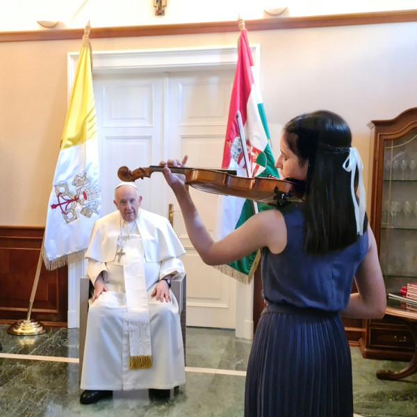 Egy 15 éves hegedűművészt fogadott utoljára Ferenc pápa Budapesten