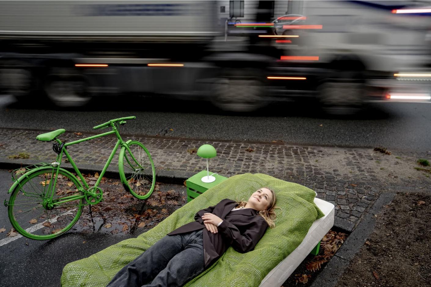 Karoline Lindgaard, az Alternatív Párt színeiben induló politikus, az utcára vonult kampányolni, központi témája: hogyan lehet jobban kihasználni a városi teret. A Der Spiegel felvételén egy koppenhágai parkolót alakított át diáklakássá, demonstrálva, hogy rengeteg lehetőség van a településeken, és a jövőben új megoldásokra van szükség a lakhatás terén. Meghökkentő és egyszerre figyelemfelhívó fotó.