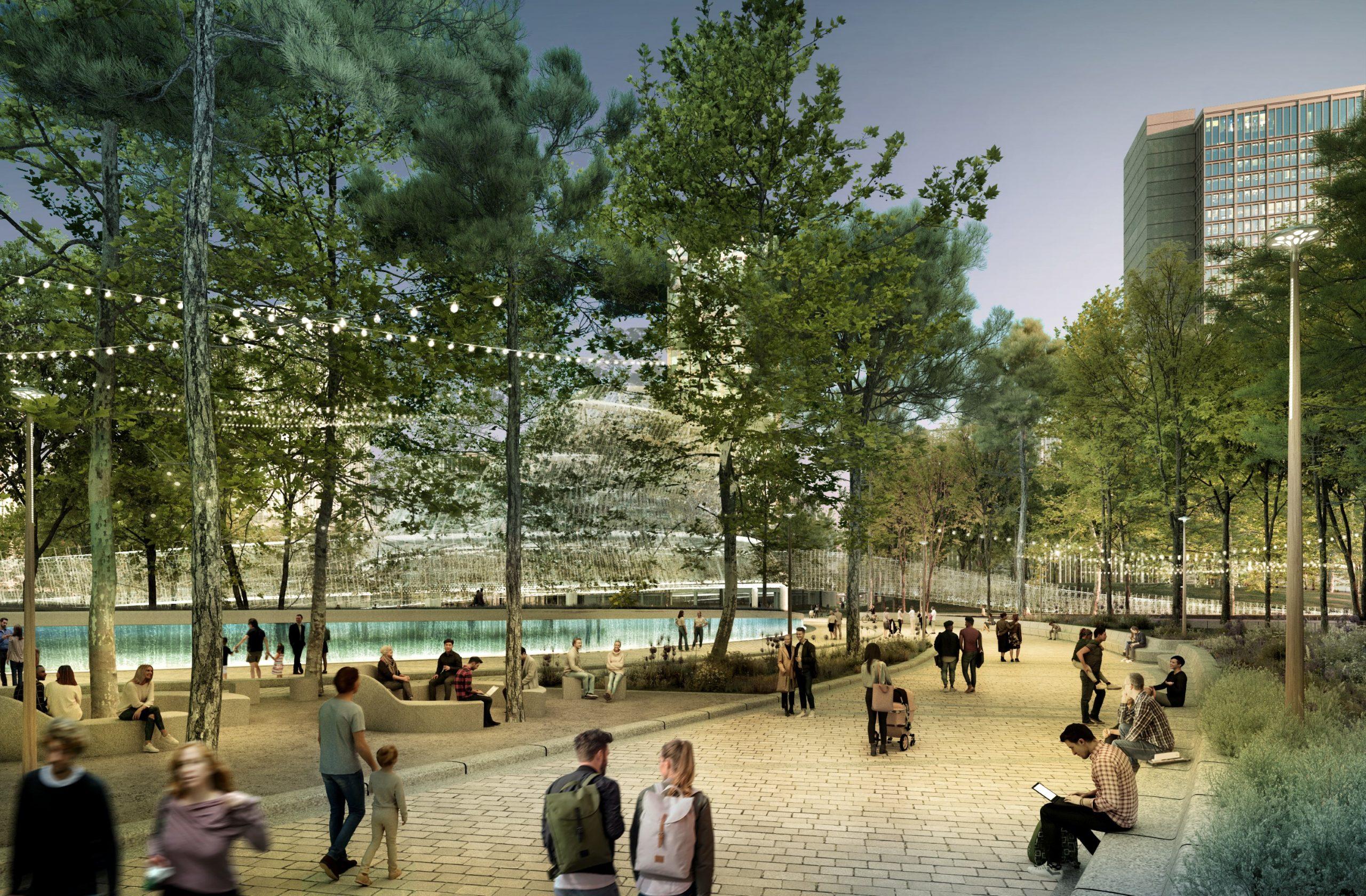 Fény- és hangérzékelő szenzorokkal teremtenek majd az év folyamán mindig változó hangulatot, az esőkertek és a hatalmas rét mellett épített környezetben sem lesz hiány: kioszkokat, éttermi teraszokat, pavilonokat, food truck-et és sportterületeket is terveznek.
