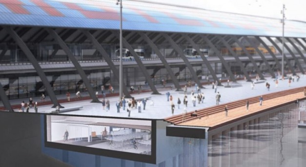 A VenhoevenCS városi építészeti tervezőiroda által elképzelt parkolóház egy félig úszó szerkezet része lesz, amelyet az amszterdami központi pályaudvar mögötti rakpart védelmére terveznek. A bejárattól a kerékpárosokat lefele irányítják. A tágas, nagy üvegfelületű lépcsőházakból kilátás nyílik az utcáról a parkolóra.