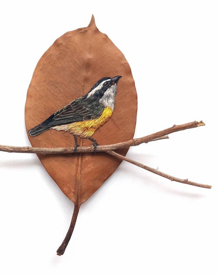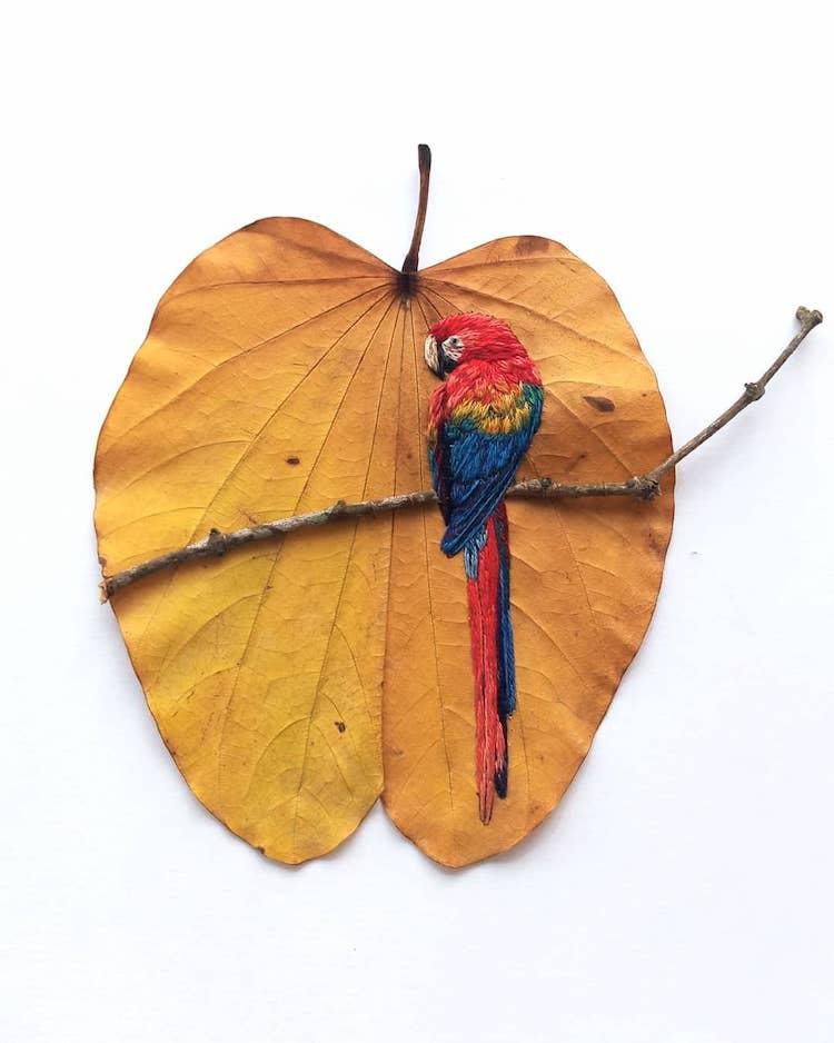 Lenyűgöző madárhímzésekkel kel életre a száraz falevél.