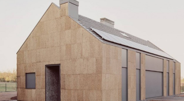 Az előre gyártott faszerkezetre szalma került, amit parafából készült burkolattal borítottak. Ez a kombináció remek szigetelést biztosít, ami csökkenti a ház energiafelhasználását, amelyet egyébként főként napelemekből nyer.